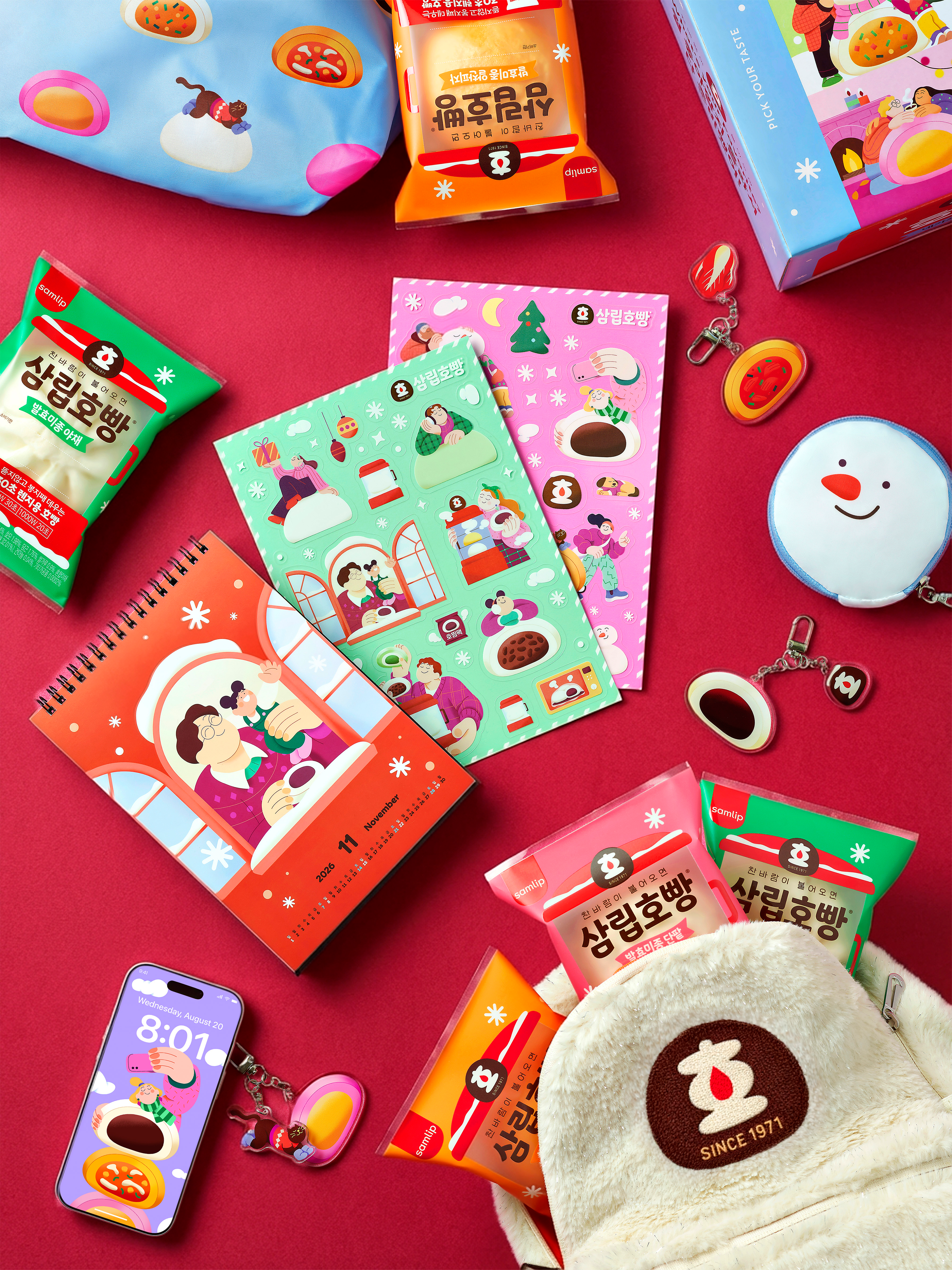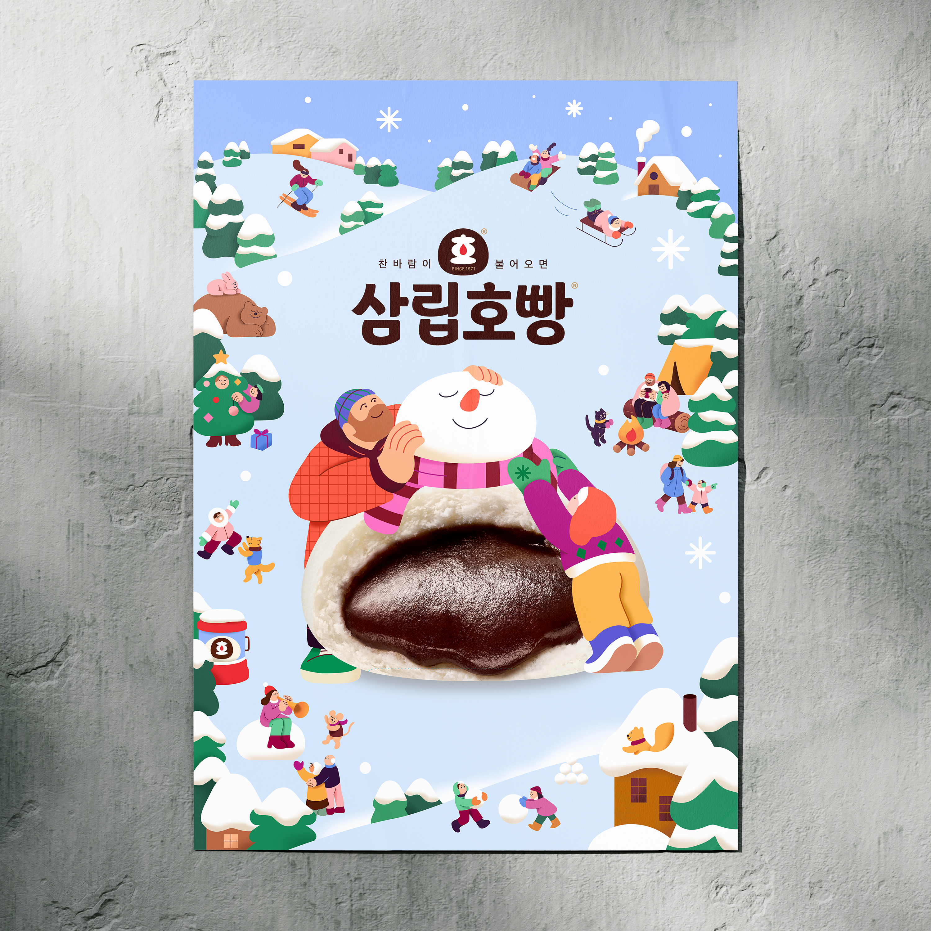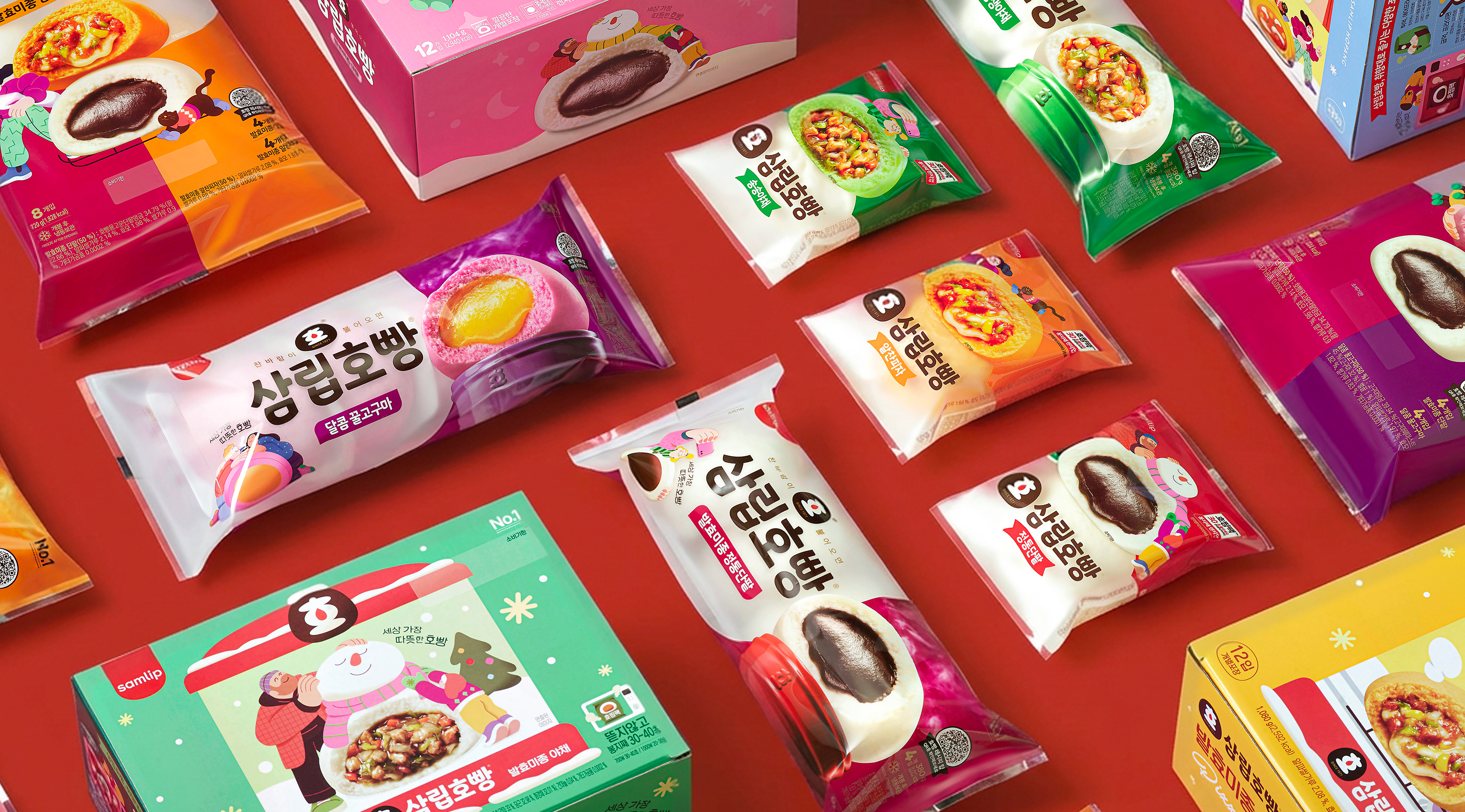 Created the winter key visual illustration and overall product packaging for SPC Samlip Hopang.