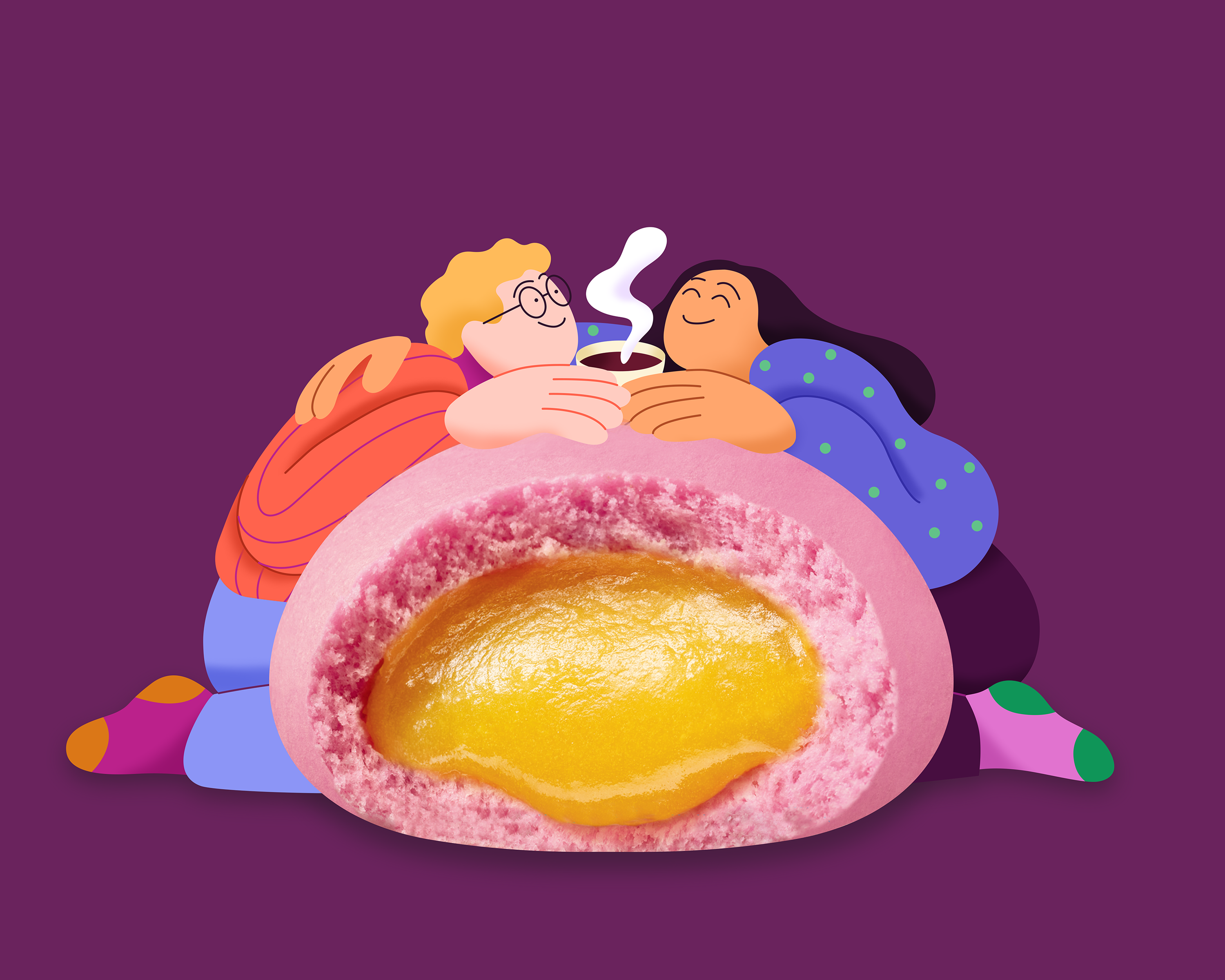 This project involved creating both the winter key visual illustration and package illustrations, focusing on a cozy seasonal mood and the familiar joy of sharing warm food during cold days.